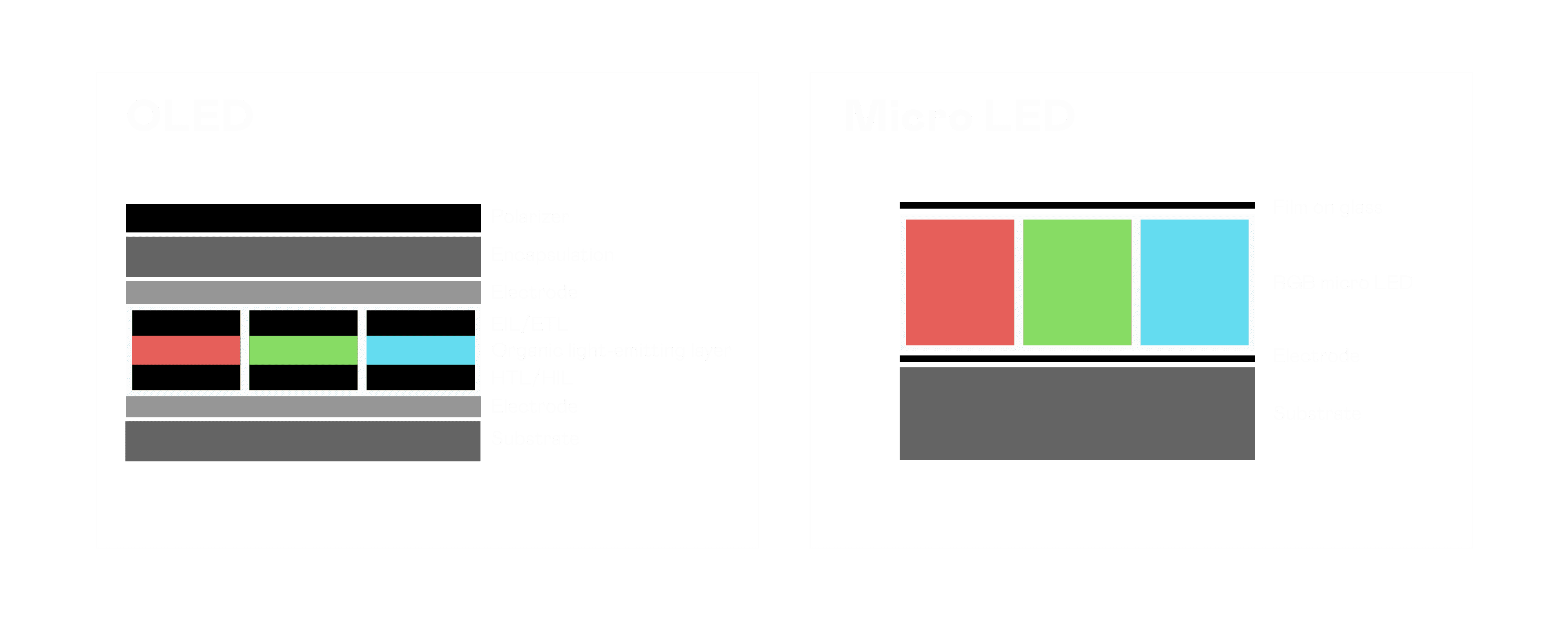 以 LED 做为显示画素,,,可让 LED 的发光效率发挥到极致,,从而让显示器具备优异的亮度表现,,,,不论是在户外或室内,,均具备出众的显示效果。。同时,,与使用有机材料的 OLED 相比,,,,LED 具备更稳定、、寿命更长的特性,,,,不仅不会有画面烙印问题,,而且更不容易出现故障、、、、坏点。。。