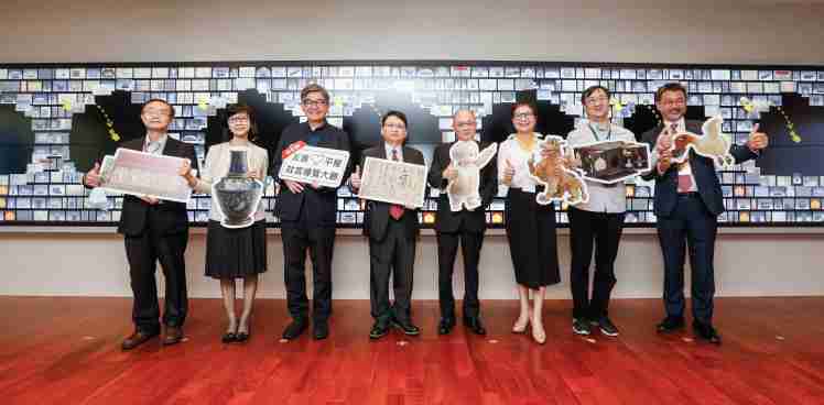 巨星国际携手创利空间为故宫建置的智慧文物互动导览墙及轮播墙,,,,今日正式启用。。(左四:巨星国际新事业暨投资管理总部副总经理杨本豫、、、、右四:故宫博物院院长吴密察、、、、右三:太极影音董事长黄宝云)